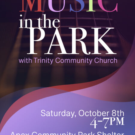 Music in the Park October 8, 2022 4:00 pm – 7:00 pm Apex Community Park 2200 Laura Duncan Road Cary, NC Get Directions Come join us for an afternoon of worship music